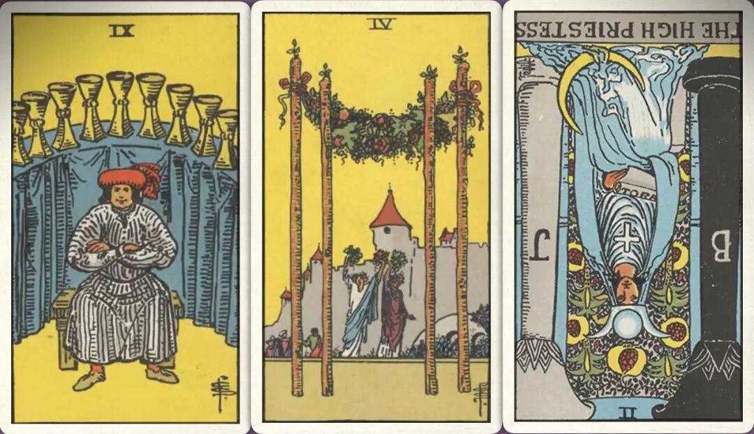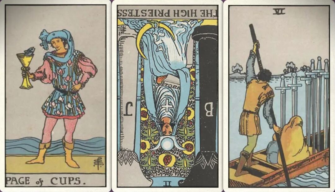 牌:圣杯侍从+ 女祭司- 宝剑六+