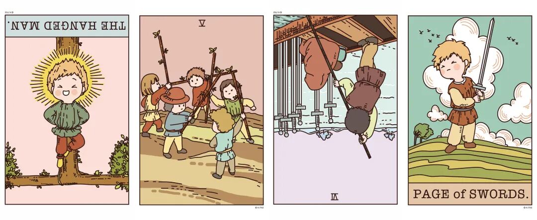 逆位宝剑六、正位宝剑侍从
