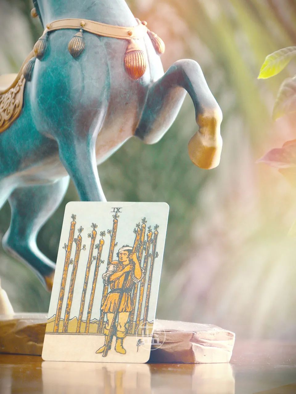 权杖9具有一股安静的力量,但它呈现的是一种防御的状态,会让你的戒心变强,但在这种能量影响下你可能会变得有点佛系,既不想受到什么伤害,但暂时也不想去争抢些什么,相对来说,更像是处在一种疗愈的阶段中。
