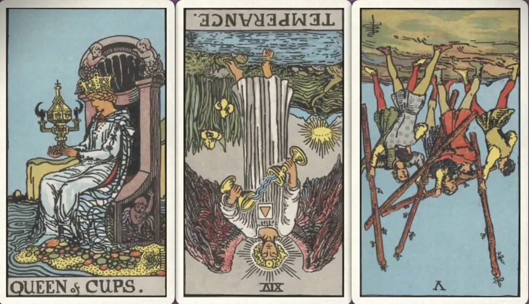 牌:圣杯皇后+ 节制- 权杖五-
