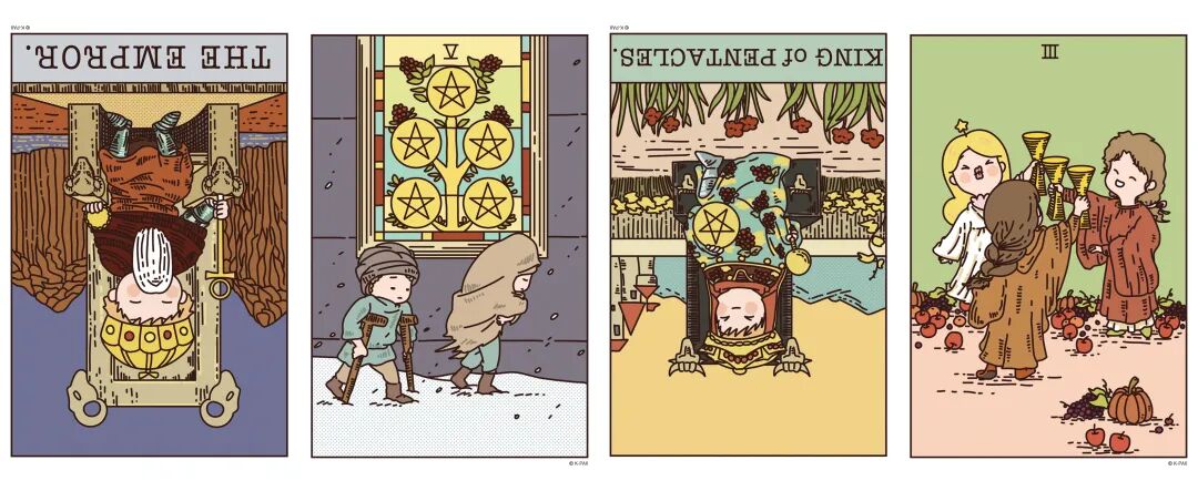 逆位星币国王、正位圣杯三
