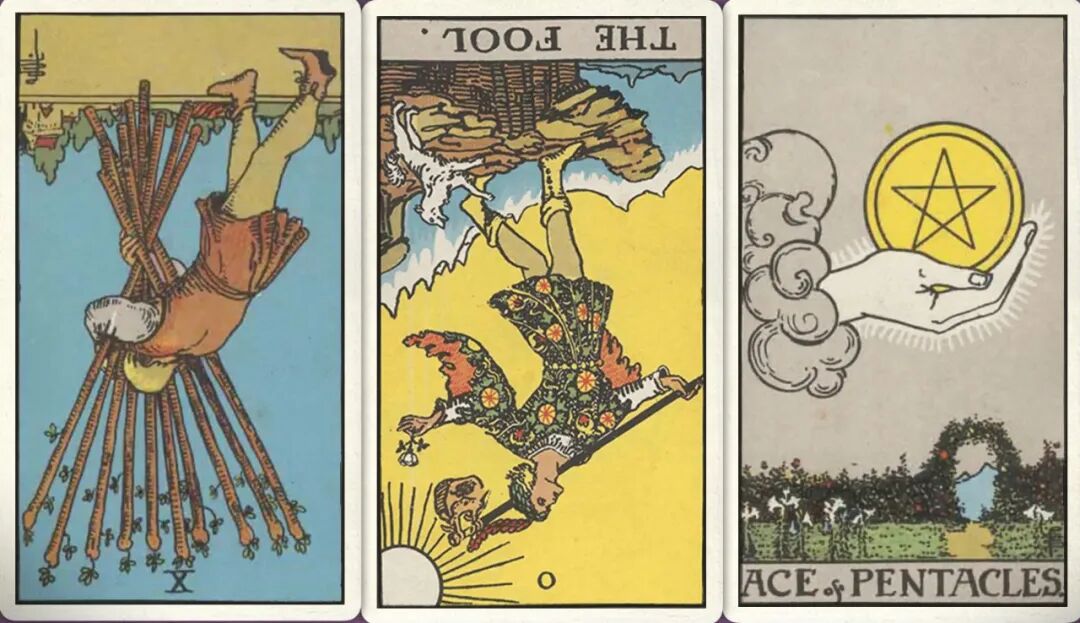 牌:权杖十- 愚人- 星币ace+