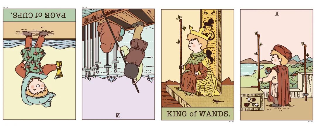 逆位圣杯侍从、逆位宝剑六